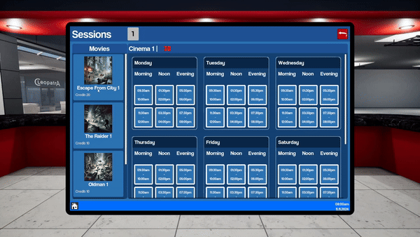 获得电影版权并设置放映时间的顺序。游戏中最详细的系统——电影排片系统,为你提供了多种策略机会。你可以设定高价播放热门电影,或者以低价吸引更多观众。可以尝试多种组合!